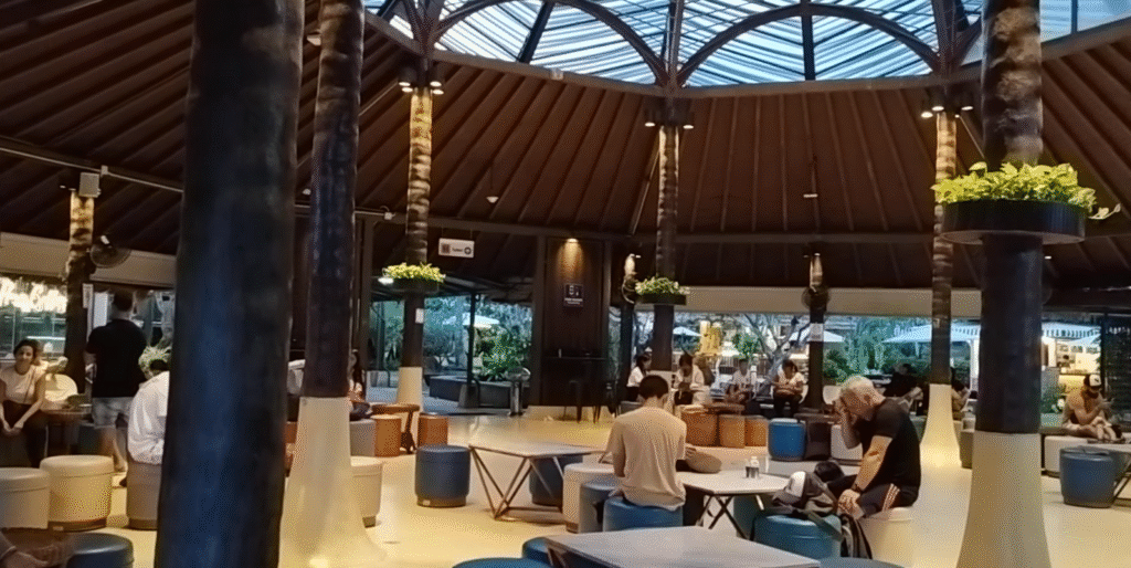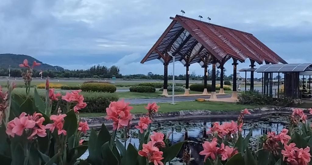 Cogimos un taxi hasta el pequeño aeropuerto de Koh Samui, y la verdad es que no podíamos marcharnos sin hablar de lo bonito que es este aeropuerto. Más que un aeropuerto parece un resort tropical: todo está al aire libre, con tejados de palma y bambú, jardines cuidados, ventiladores enormes moviendo el aire y una atmósfera relajada que hace que el tiempo pase volando.