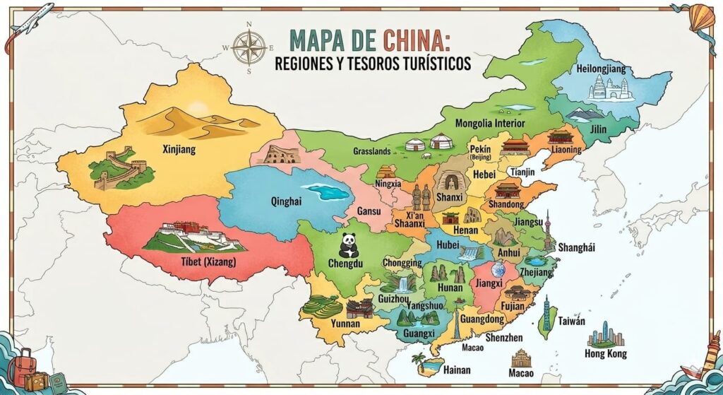 | Norte | Pekín, Xi’an, Harbin | Invierno frío, verano caluroso | Gran Muralla, Guerreros de Terracota, Festival de hielo | Pekín, Hebei, Shanxi, Shaanxi, Heilongjiang |