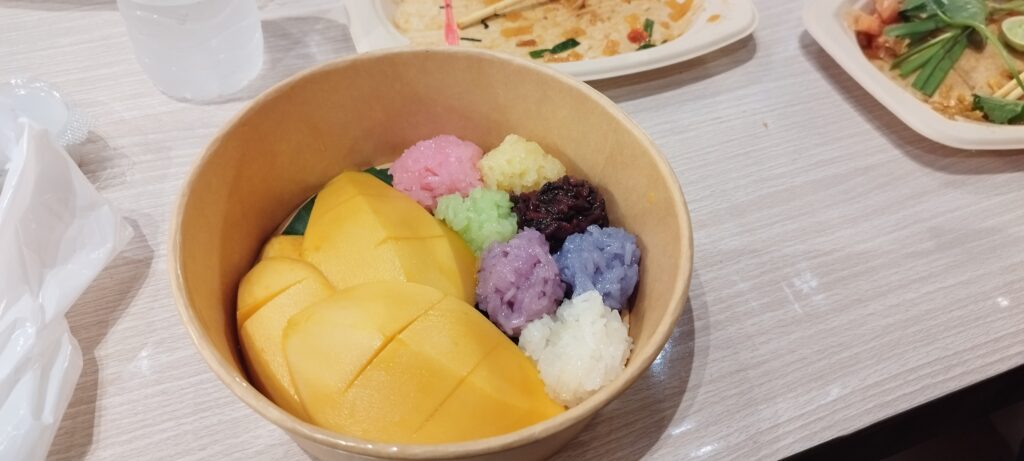 Arroz glutinoso cocido al vapor con leche de coco, acompañado de mango maduro. Un postre dulce, cremoso y muy representativo de Tailandia. - Roti (โรตี)