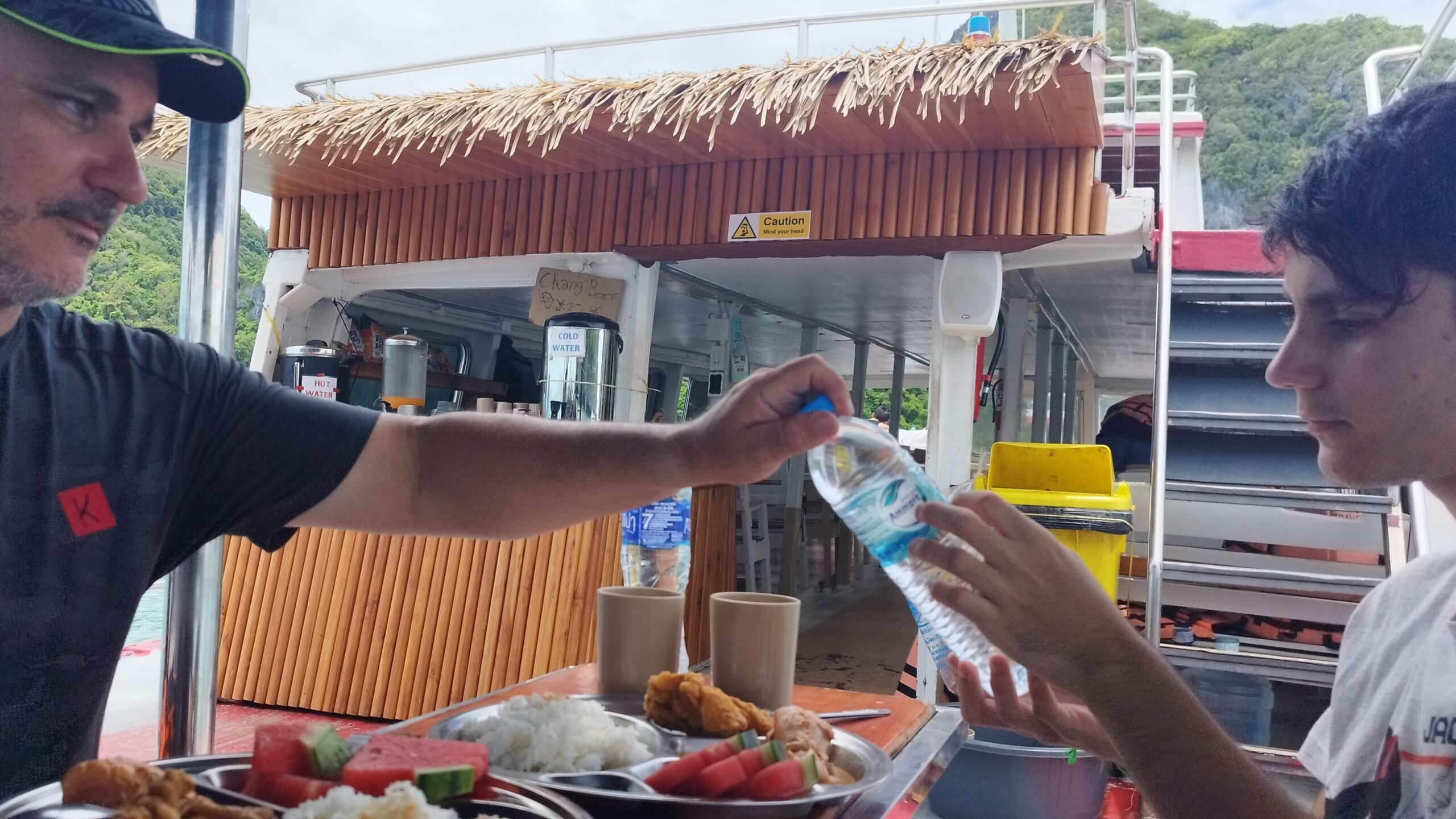 Regresamos al barco con el tiempo justo para disfrutar de una comida tipo buffet que nos sentó de maravilla. Después de tanto esfuerzo, todo nos supo delicioso.