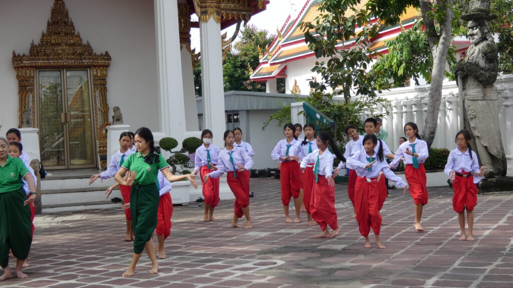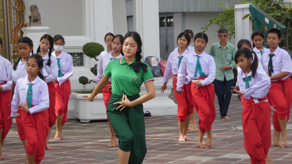 Paseamos por allí un buen rato, casi en soledad. Y justo antes de irnos, nos quedamos embelesados viendo a un grupo de estudiantes ensayar unas danzas tradicionales en uno de los patios. Fue totalmente inesperado y, entre la tranquilidad del templo y lo pocos turistas que estábamos allí a esa hora, se convirtió en un plus encantador de nuestra visita. Una de esas pequeñas sorpresas que hacen que un lugar ya especial te llegue un poquito más.
