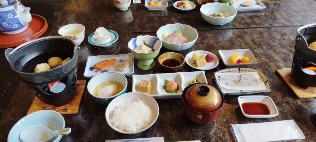 A la mañana siguiente, nos levantamos pronto y bajamos a desayunar. Y otra vez nos esperaba una mesa llena de cosas: pescado, arroz, verduras, té… cero café ni tostadas. Eso sí, había arroz, huevo, algo de jamón y fruta, así que nos apañamos como pudimos. Yo preferí la cena, pero había que probarlo todo.