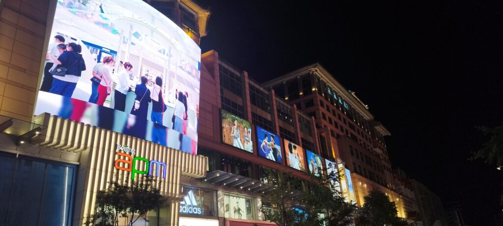 Wangfujing es la avenida más famosa de Pekín para experimentar su lado moderno y cosmopolita. A lo largo de la calle encontrarás centros comerciales gigantescos, tiendas de marcas internacionales, luces y pantallas LED que iluminan la noche, y puestos de comida callejera que ofrecen desde snacks tradicionales hasta curiosidades gastronómicas locales.