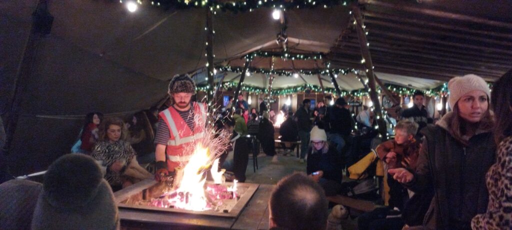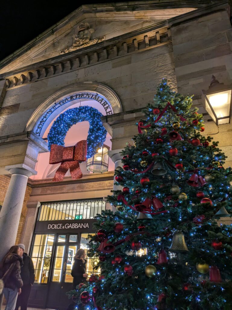 Covent Garden ya estaba vestido de gala: un árbol gigante, luces por todas partes, música en directo y miles de personas con vino caliente en la mano. Sus galerías cubiertas estaban repletas de tiendecitas y puestos navideños.
