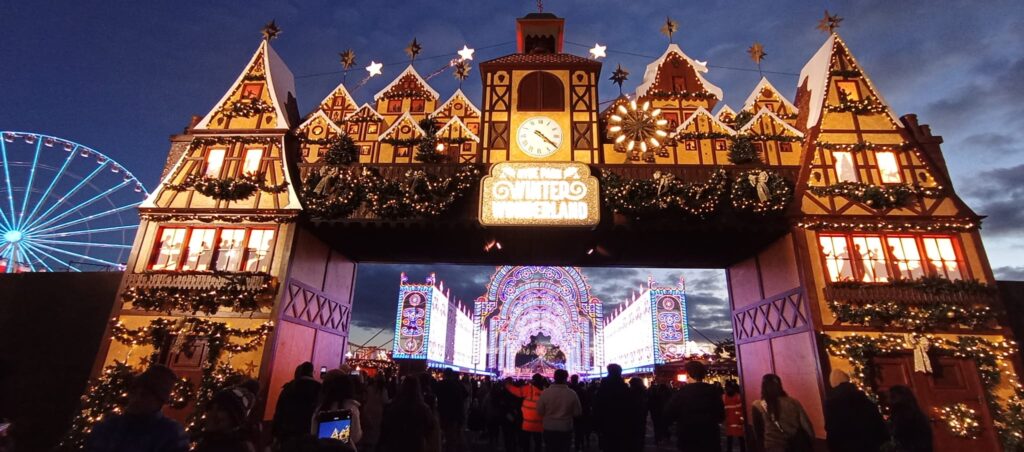 Teníamos entrada para las 16:00 (reservada con unas semanas de antelación). En Hyde Park instalan cada año un enorme parque temático navideño: