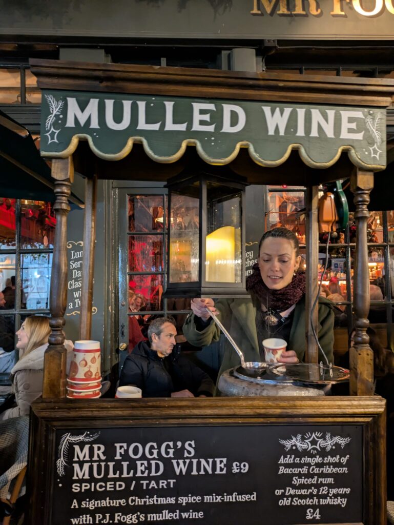 Probamos el mulled wine, ese vino caliente especiado que esta super dulce, pero que costó a precio de oro….18 libras 3 mini-vasitos!!!!