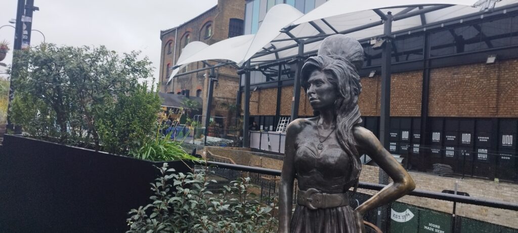 Vimos la estatua de un icono local, y recorrimos el canal, sus puentes, sus grafitis… lo pasamos bien, pese a la lluvia. Olor a comida, risas, callejones… Camden de esa auténtica bohemia que no decepciona.