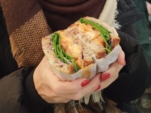 Probamos sándwiches de pastrami y de carne con harissa que nos supieron a gloria… y la experiencia mejoró aún más cuando quien nos atendió resultó ser español, de Cantabria. Una ayuda divina para nuestro nivel de inglés.