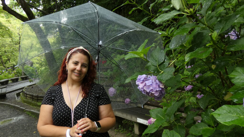 Al mismo tiempo, algunos lugares estaban mucho menos concurridos de lo habitual. Pudimos pasear por jardines repletos de hortensias en todo su esplendor y explorar el bosque de bambú por la tarde, mientras caía una lluvia ligera y casi no había nadie más alrededor. Momentos así son los que hacen que cada segundo del viaje valga la pena.