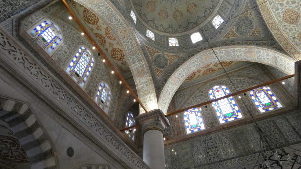 Un poco de historia: La Mezquita Azul, oficialmente llamada Mezquita del Sultán Ahmed, fue construida entre 1609 y 1616 por orden del sultán Ahmed I. Se la conoce como «azul» por los más de 20.000 azulejos de cerámica de Iznik en tonos azules que decoran su interior. Tiene seis minaretes (algo muy poco común) y está dividida en varias zonas: el patio exterior, la zona de oración y una galería para los visitantes. Su cúpula central de 23 metros de diámetro y más de 40 metros de altura es impresionante.
